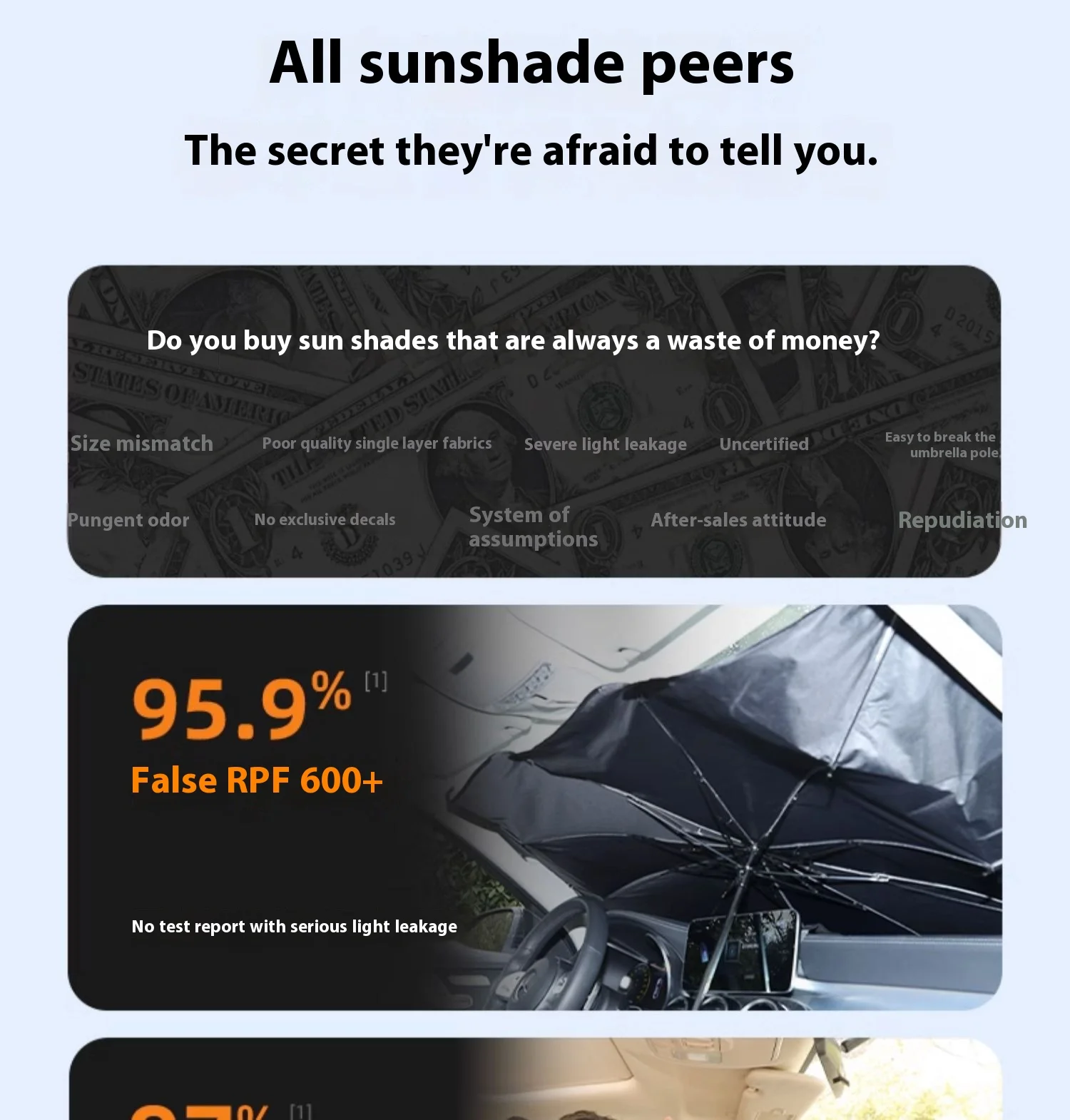 Folding Car Sunshade Umbrella for Windshield – Summer UV Protection Parasol for Front Window – Easy Storage